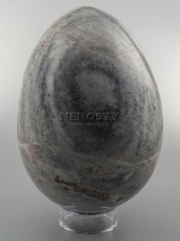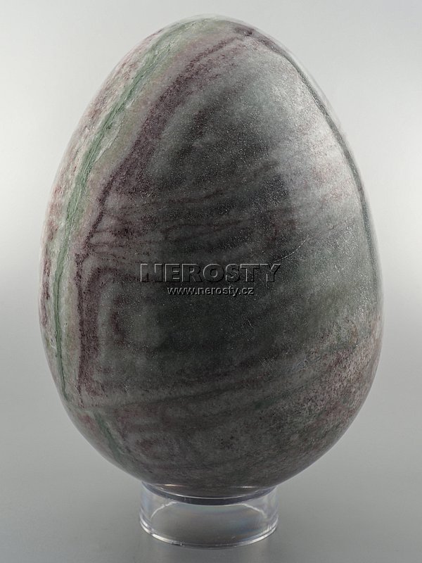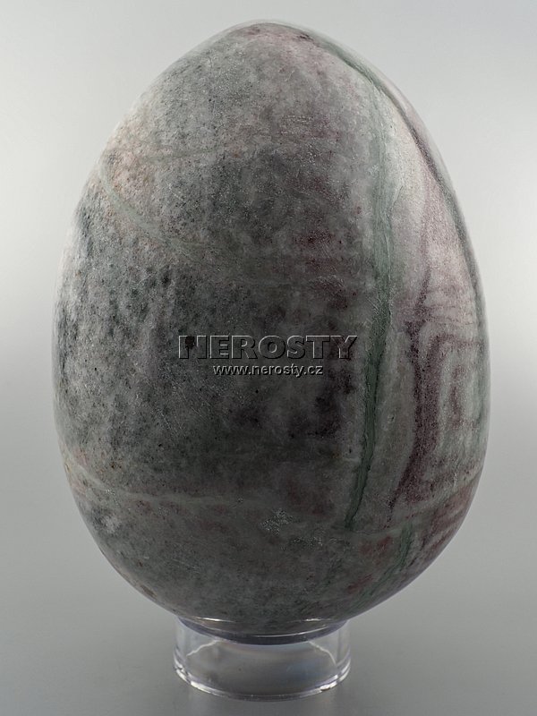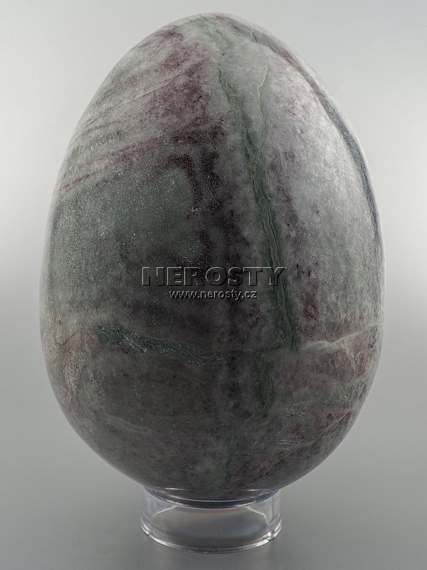 Ručně broušené a leštěné vejce ze zeleno-červeného mramoru.