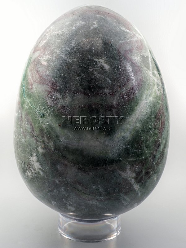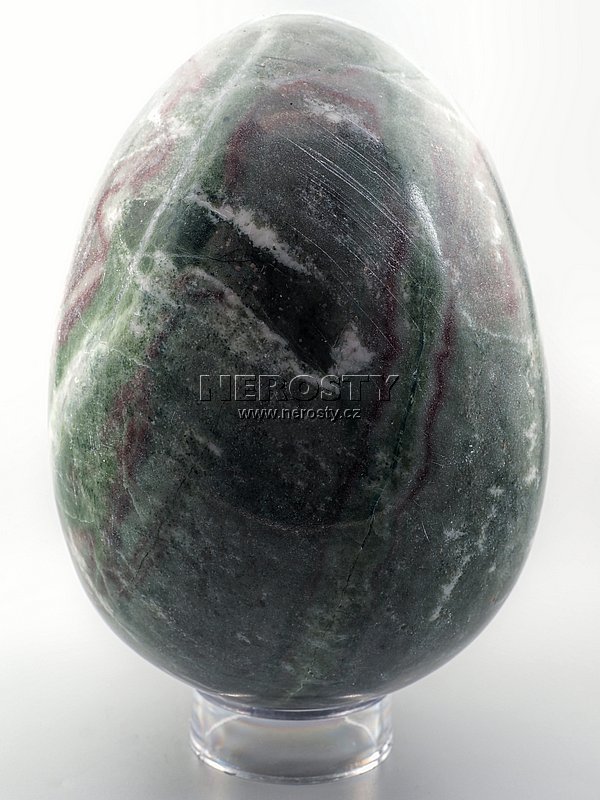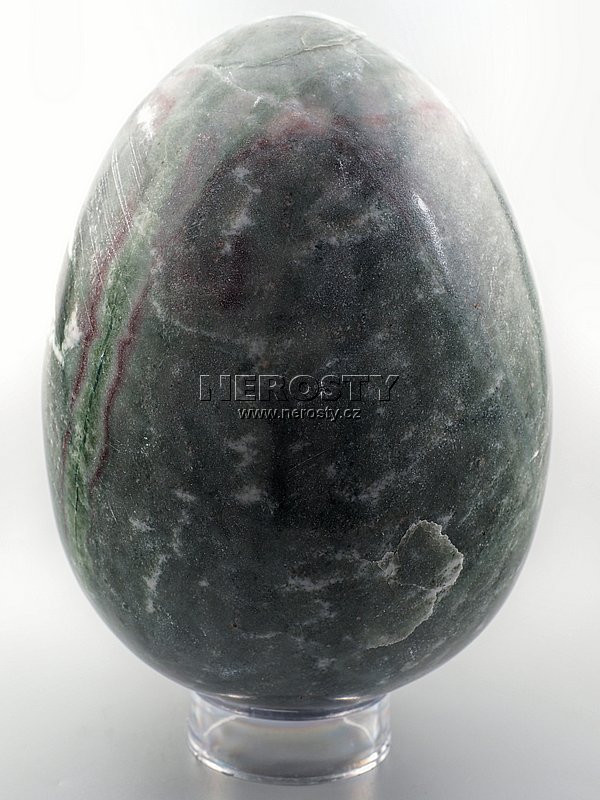 Ručně broušené a leštěné vejce ze zeleno-červeného mramoru.