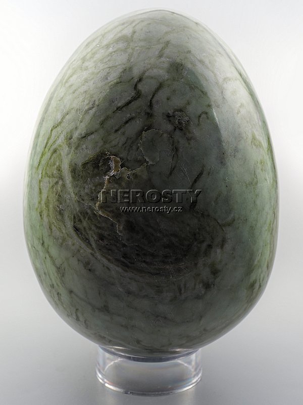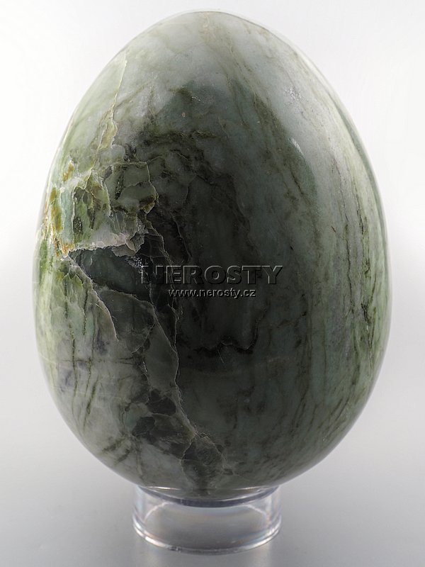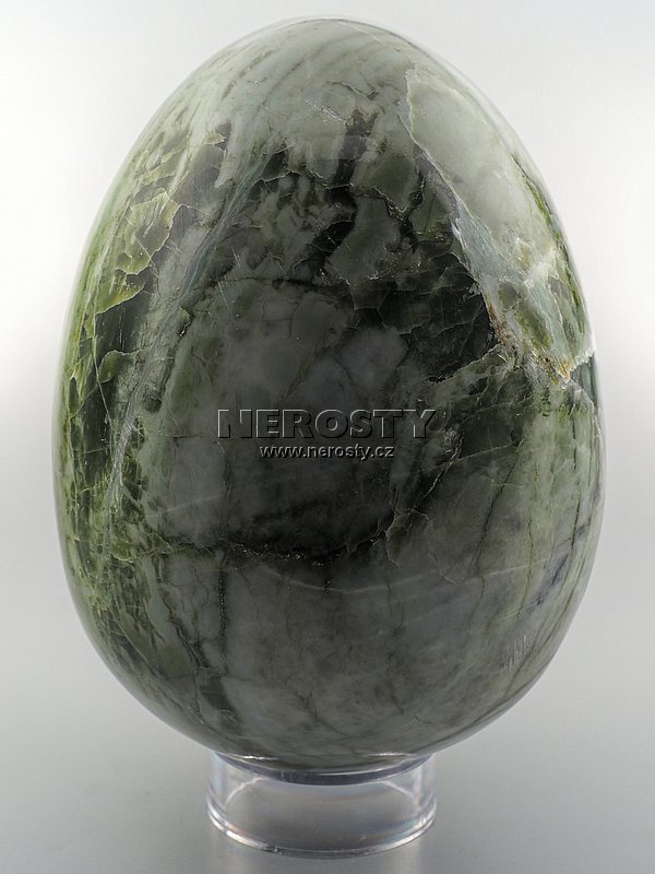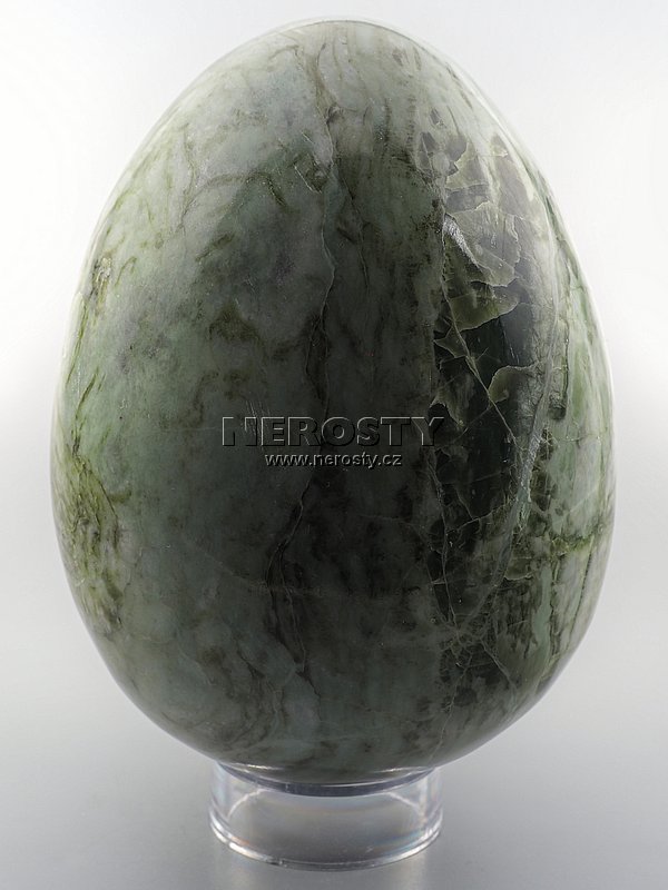 Ručně broušené a leštěné vejce ze zeleného žilkovaného mramoru.