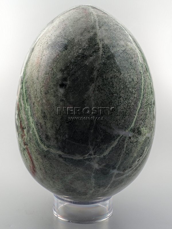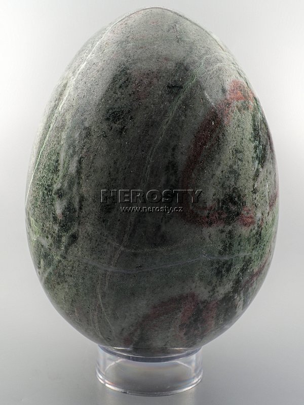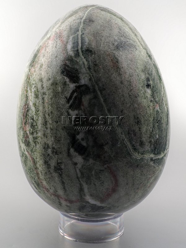 Ručně broušené a leštěné vejce z barevného žilkovaného mramoru.